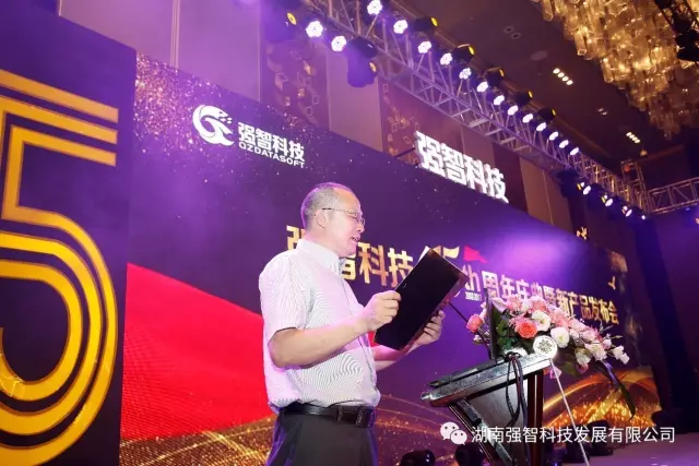 在強智科技魔術的開場中,會議正式拉開序幕。湖南強智科技董事長謝飛虹先生首先上臺致辭。他首先對在場的領導、嘉賓以及全體強智員工表示了感謝。并且說道“強智人將繼續秉承湖南人的執著與堅定,不斷開拓創新,緊跟世界科技潮流,為國家信息化、智能化事業做出應有貢獻。”