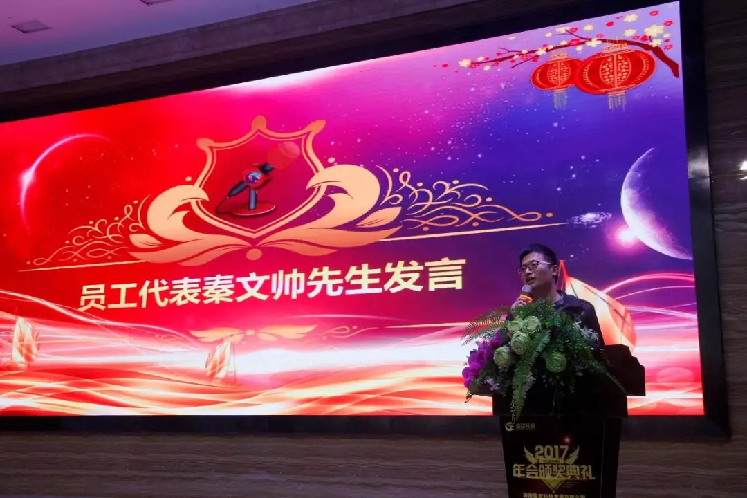 下午2點45,在《花開盛世》的舞蹈開場下,強智科技2017年度總結表彰大會隆重開幕。公司董事長謝飛虹先生為大會發表了精彩而真情的新年獻詞,并且對公司未來的發展做出了清晰明確的規劃。