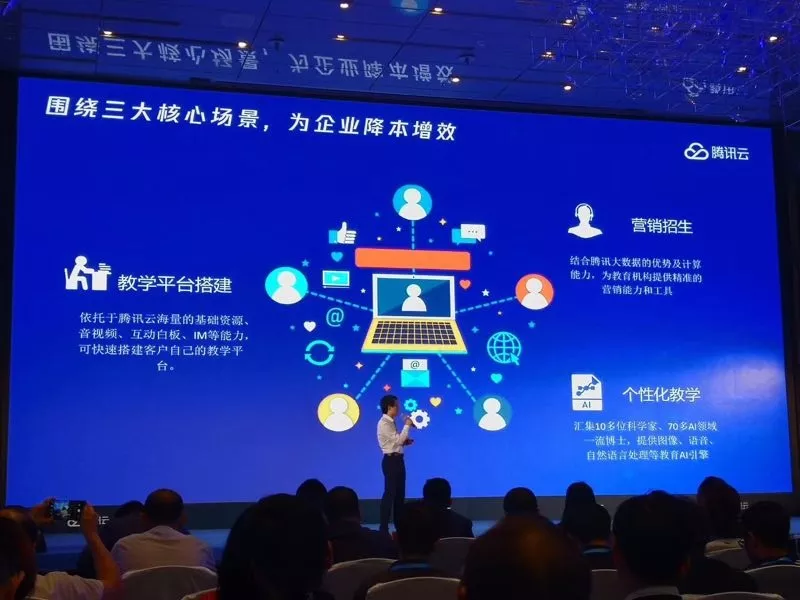 會上,騰訊云詮釋了其在智慧校園等領域的解決方案,并詳細介紹了在云服務、課堂教學、家?;?、校園管理等多個場景下的落地應用,攜手合作伙伴打造教育行業的云端生態。