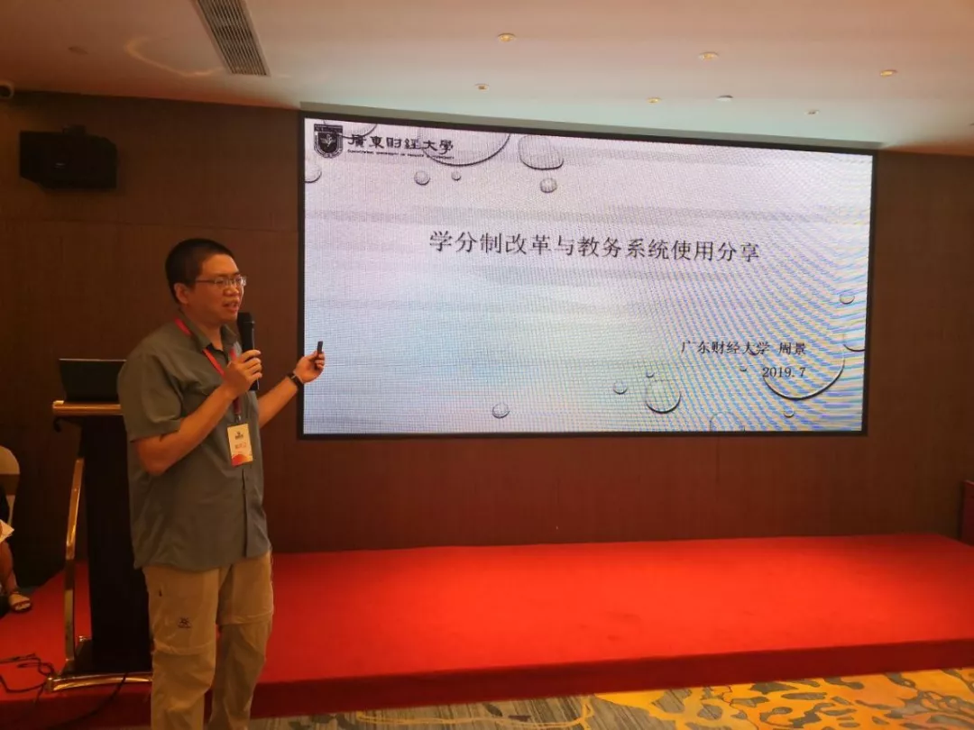 廣東財經大學教務處考試管理科科長周景先生為嘉賓帶來《學分制改革與教務系統使用分享》的議題。
