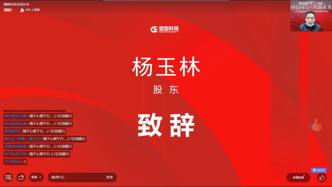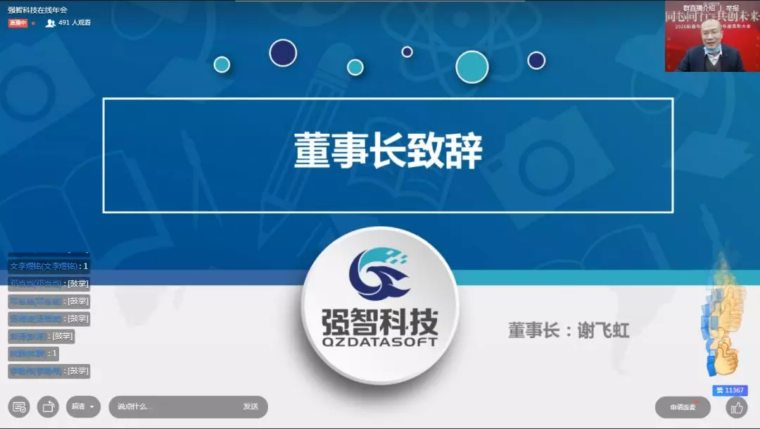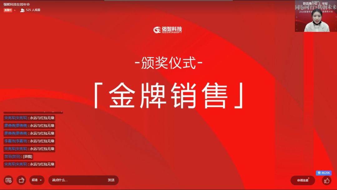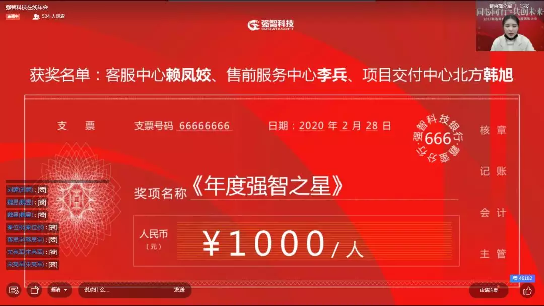 2月28日下午,隨著主持人字正腔圓的開場白,延后了21天的強智科技2020新春年會在線上直播間開始啦。
