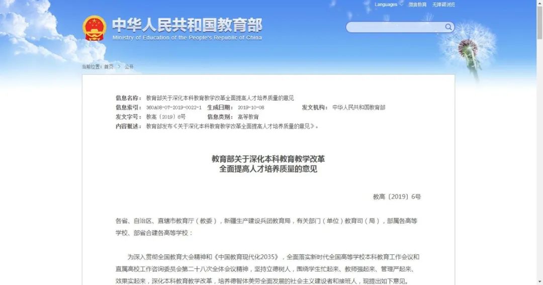 關于深化本科教育教學改革 全面提高人才培養質量的意見》強調全面推進質量文化建設。完善高校內部教學質量評價體系,建立以本科教學質量報告、學院本科教學評價、專業評價、課程評價、教師評價、學生評價為主體的全鏈條多維度高校教學質量評價與保障體系……將質量意識、質量標準、質量評價、質量管理等落實到教育教學各環節……