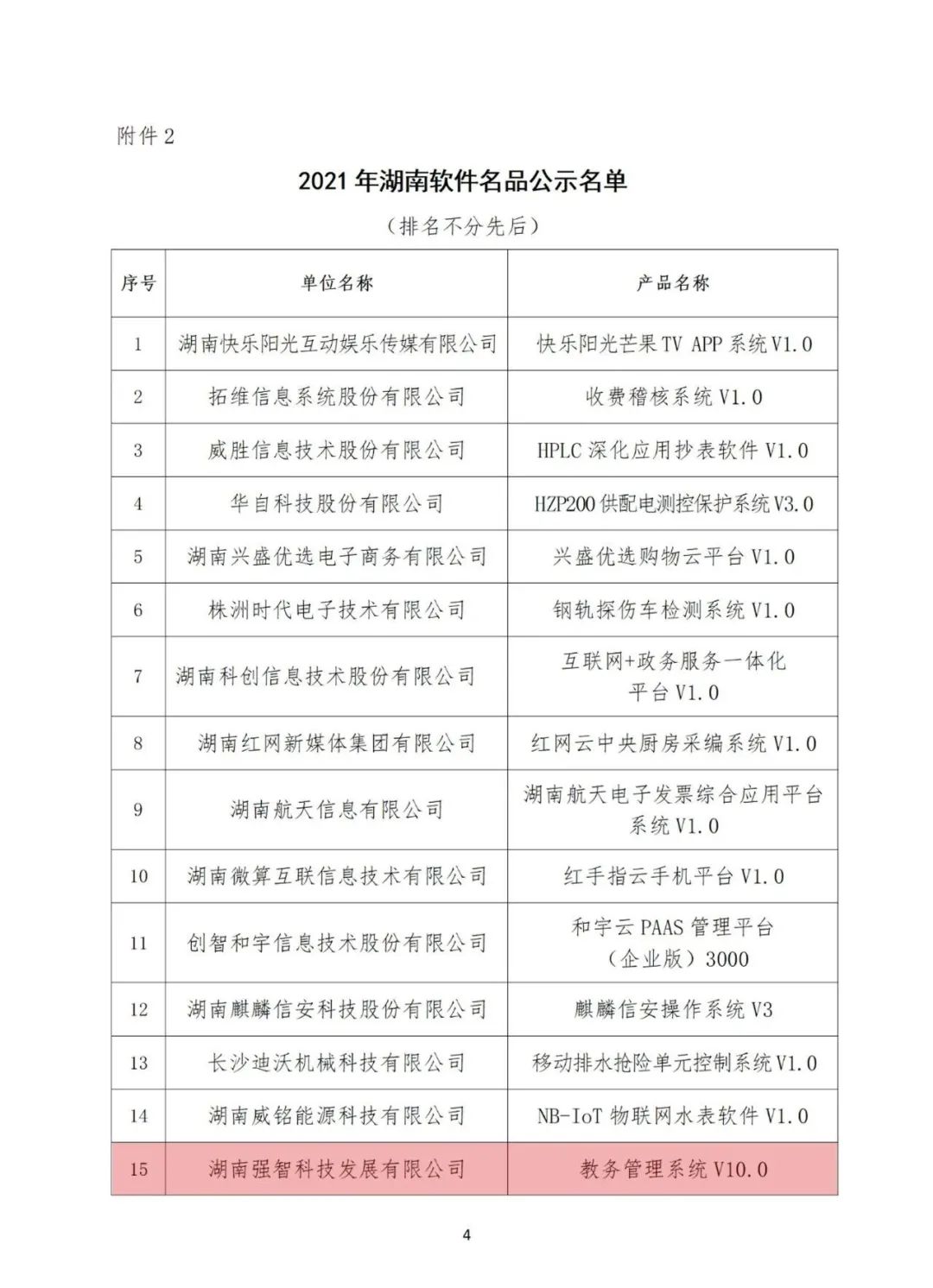 湖南強智科技發展有限公司的“教務管理系統”被評為“湖南軟件名品”。