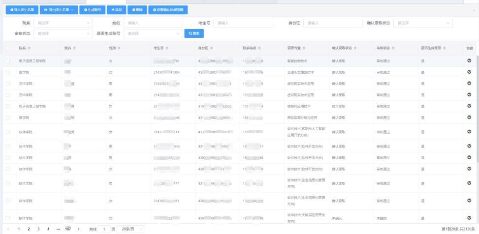 管理員在電腦端可導出所有擬錄取學生名單,確認就讀名單,未確認名單以及退檔申請數據。全過程記錄就讀審核流程,保障數據核查有跡可循。