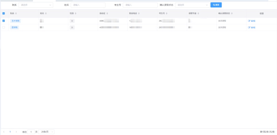 協助招生老師批量確認錄取志愿,簡化退檔流程,及時、準確的完成錄取志愿確認和退檔審核操作,優化新生錄取流程,簡化退檔繁瑣手續。