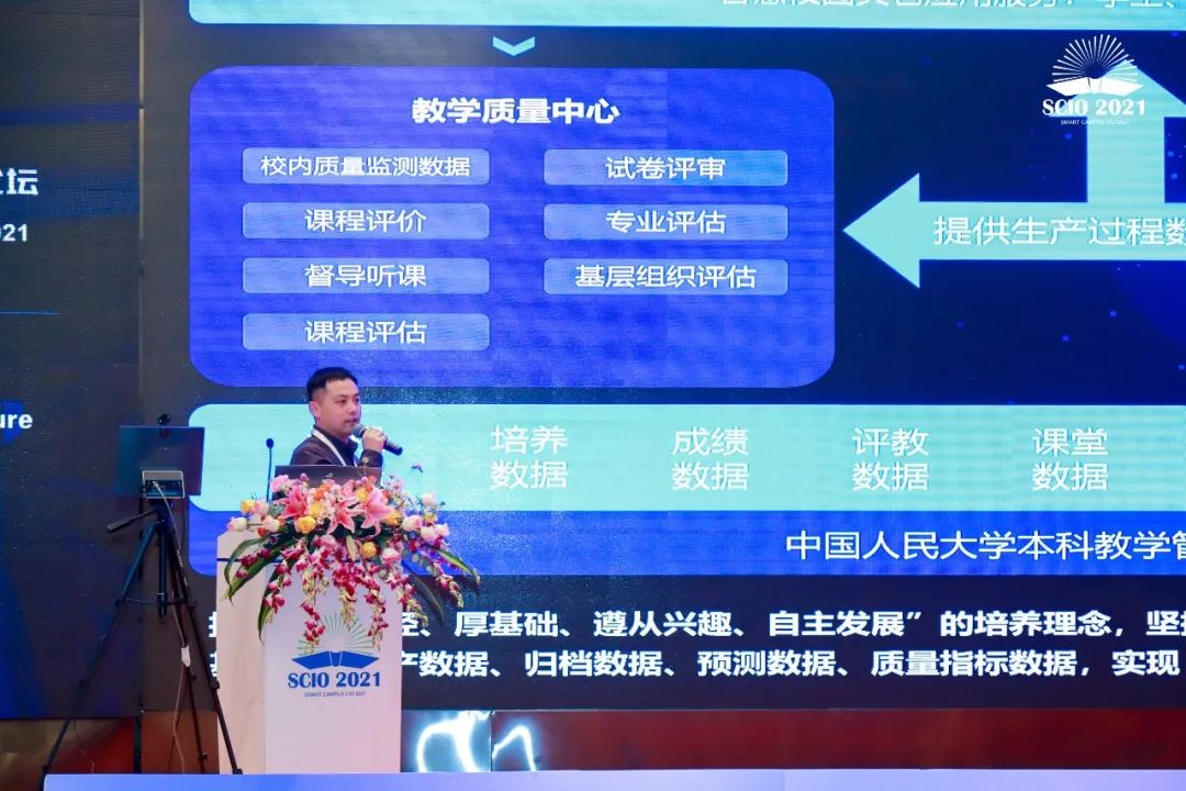 會上,強智科技產品總監彭鵬作了題為《信息技術與教學管理的深度融合與創新實踐》的主題報告。