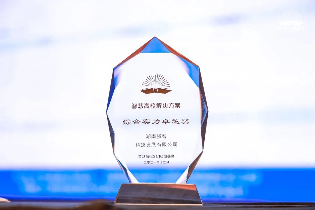 在頒獎環節,強智科技憑借強勁的研發實力和優質的技術服務,榮獲了“智慧高校解決方案綜合實力卓越獎”,再次證明了強智科技智慧校園解決方案的優秀與實力,贏得了行業領域的肯定及認可。