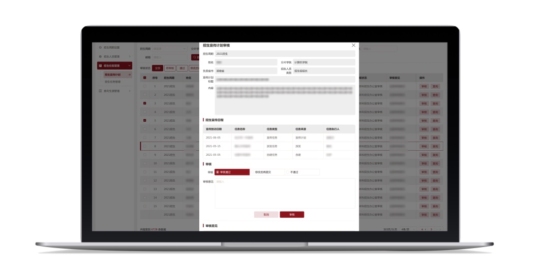 ? 審核計劃:對招生組提交的招生宣傳計劃進行審核。