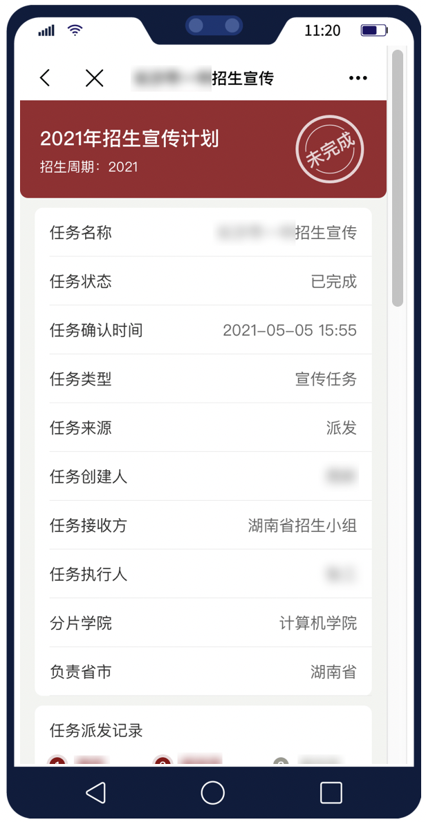 ? 派發任務:派發專項任務給學院招生負責人或者省/市招生小組,并對任務進行管理。