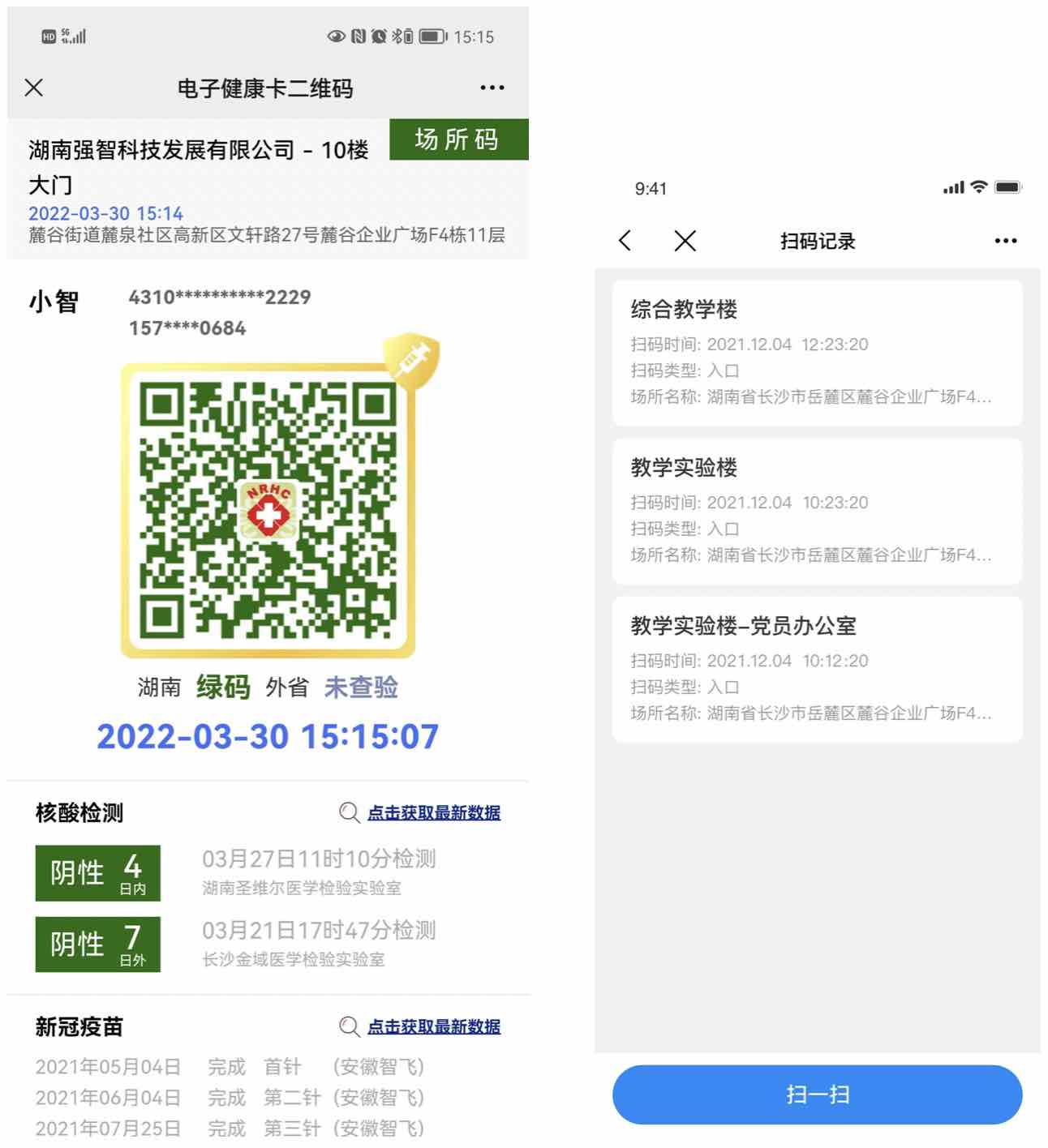 系統為校園內的重要場所生成專屬二合一場所碼,對出入該場所的人員進行信息的自動化登記和展示,并核驗人員健康信息。