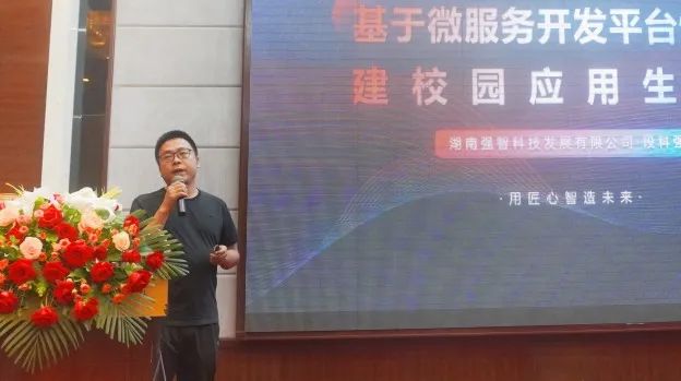 產品總監段科強圍繞“智慧校園應用新生態、微服務快速開發平臺、業務產品”等方面,向與會嘉賓匯報了強智智慧校園應用生態圈,以微服務快速開發平臺作為應用生態搭建的筑基,快速打通需求響應最后一公里,為高校提供靈活定制,快速匹配及滿足業務變化的各類應用。