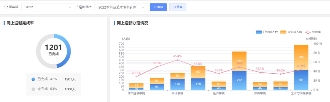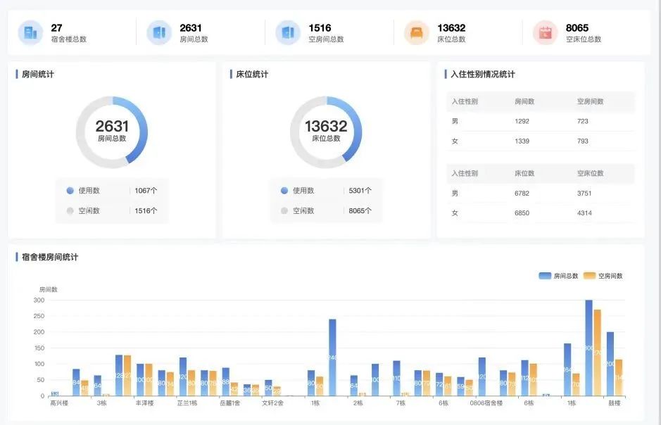 利用網上迎新平臺,既可讓學生提前選宿,也可讓老師一鍵智能分宿,新生到校就能住進舒適的宿舍。 同時學工部、校領導可即時查看新生入住情況、床位使用情況、宿舍利用率等,迎新工作數據化,宿舍管理更智慧。