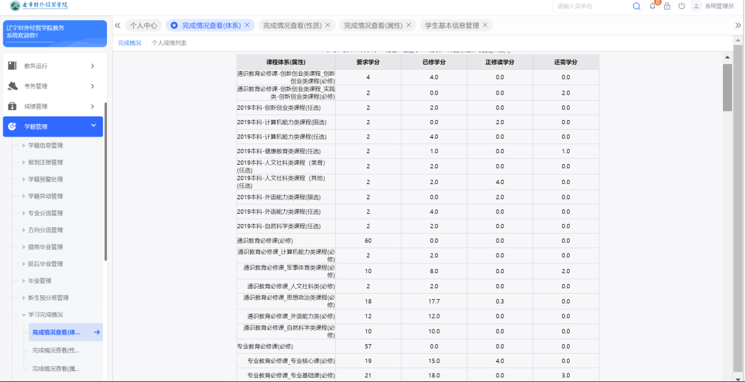 ? 依托系統,支撐學分制改革,完成學年學分制向完全學分制的逐步過渡;建立符合完全學分制的課程和培養方案體系、課程排選策略、畢業審查方法等。