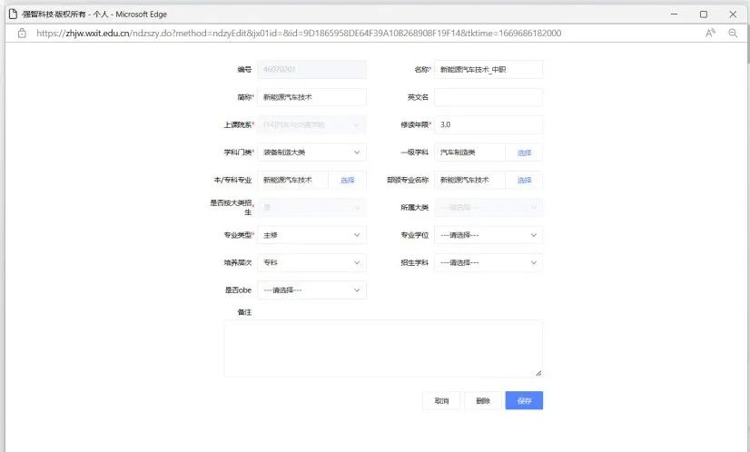 無錫職業技術學院教務管理系統在人才培養方案的制定上,遵循OBE理念,從畢業要求、培養目標上錄入培養方案,關聯畢業要求各指標點與開設課程,設置課程對崗位能力的支撐;在課程標準錄入上也基于OBE課程標準格式;成績分析管理基于OBE理念來進行成績達成度計算……