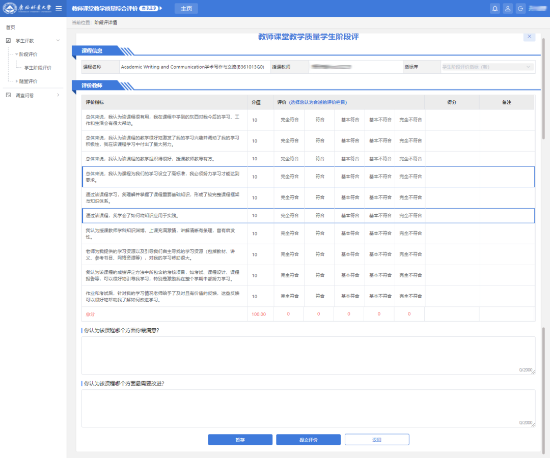 ? 學生也可以進行階段性評價,對本學期的全部課程進行學習反饋和評價,提升學習主動性。