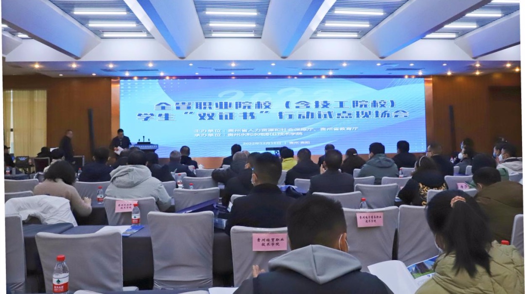 貴州省人力資源社會保障廳副廳長徐海濤表示,通過實施‘雙證書’行動,充分發揮了評價的‘指揮棒’作用,強化了職業院校培養高技能人才基礎性作用,促進了就業創業,壯大了貴州省高技能人才總量。2022年12月16日下午,由貴陽市人力資源和社會保障局、貴陽市教育局主辦,貴州水利水電職業技術學院承辦的“全省職業院校(含技工院校)學生‘雙證書’行動試點現場會”在貴州水利水電職業技術學院成功舉行,并在各市(州)人社局、教育局,各職業院校(含技工院校)會議室設立了分會場。會議由省職業技能鑒定考評指導中心主任萬遠茂主持。