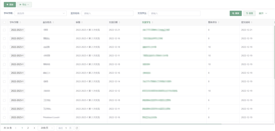 因此,清華大學求真書院急需一個老師與學生交流情況的跟蹤記錄平臺,老師(益友、輔導員、助教、班主任、書院管理團隊)可以上傳與學生的交流情況,學生可以對老師的評價做出反饋,能統一展現學生學習成長數據。