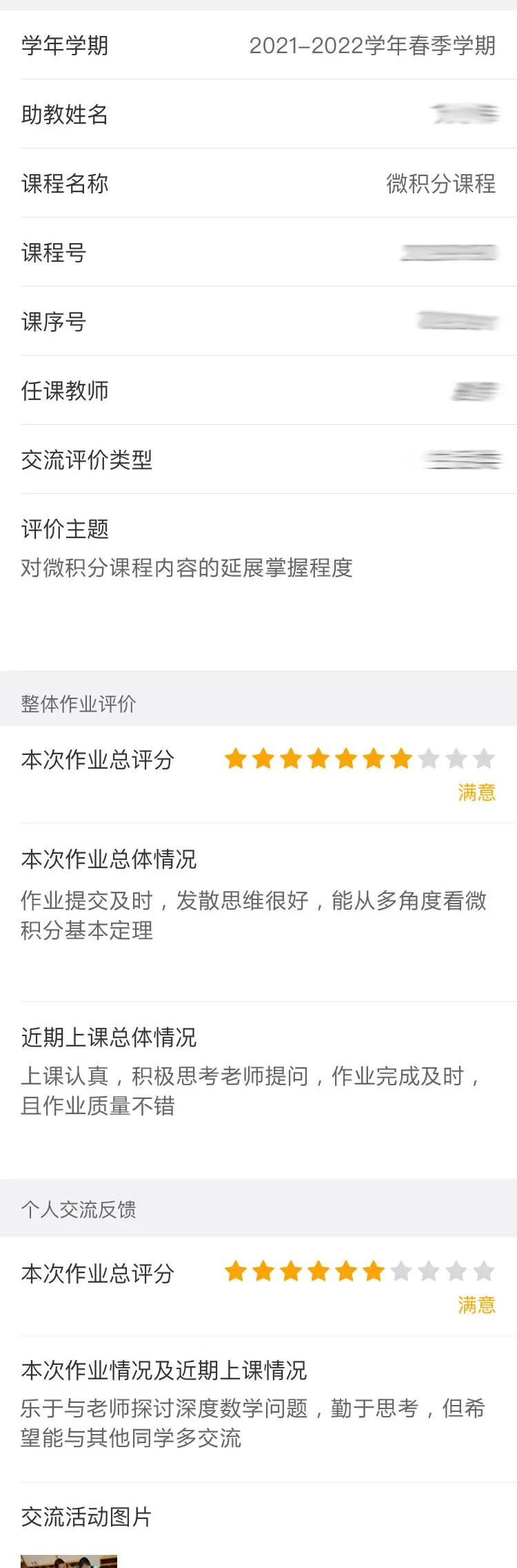 助教可以對作業優秀學生和作業不理想學生的本次作業情況和近期上課情況進行記錄與反饋。學生也可以評價助教與自己的交流情況。