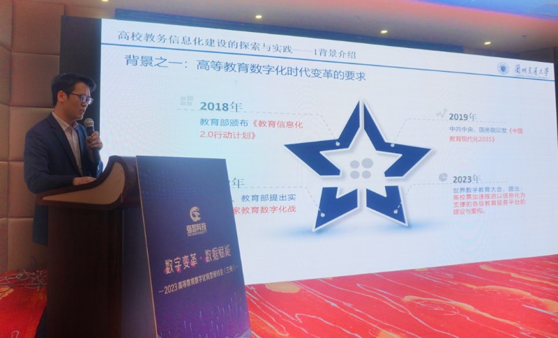 蘭州交通大學教務處副處長馬元琳在報告中表示,在國家教育數字化戰略行動的背景下,推進學校的數字化變革是發展所驅。馬元琳向來賓們介紹了高校教務信息化建設的背景、思路和實踐,對教務信息化平臺進行了全面的更新迭代,以滿足學校數字化建設的需要。