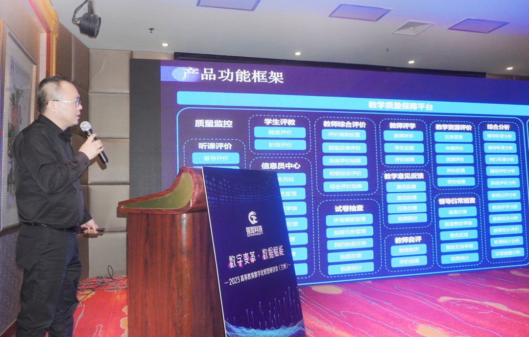 此外,強智科技產品總監李兵、成旺分別發表題為《基于數據,面向服務——新一代智慧教務系統建設與實踐》、《強智科技教學質量保障平臺》主題報告,向與會嘉賓分享了強智科技在推動高校教育數字化轉型發展的實踐經驗以及取得的建設成果。