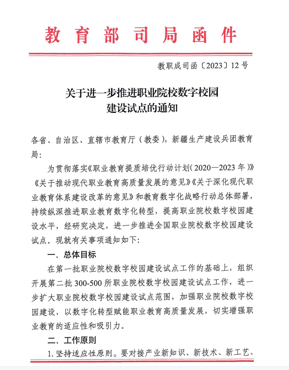教職成司發布了《關于進一步推進職業院校數字校園建設試點的通知》:為加強職業院校數字校園建設,完成8大數據集85張表的數據推送。