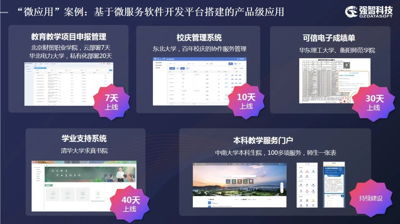 “低代碼數字化、開放賦能、數據可視、建用管一體化......”程鵬表示,高校數字化轉型是一個不斷拓展服務場景,深挖服務內容的過程,公司圍繞“應用服務體系”建設,通過低代碼開發平臺研發低成本、短周期、高質量的校園微應用,為高校在智慧教學、教師發展、學生發展、智慧管理、智慧服務以及校園安全方面提供全場景、數字化的應用生態。