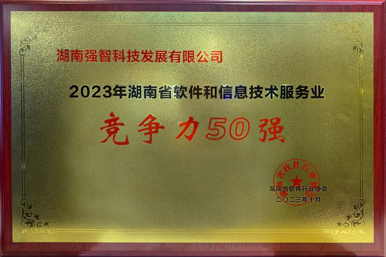 強智科技憑借在高校數字化教育領域的技術創新、卓越服務和行業影響力,榮獲“2023年湖南省軟件和信息技術服務業綜合競爭力企業50強”,這是強智科技第四次獲得該榮譽。
