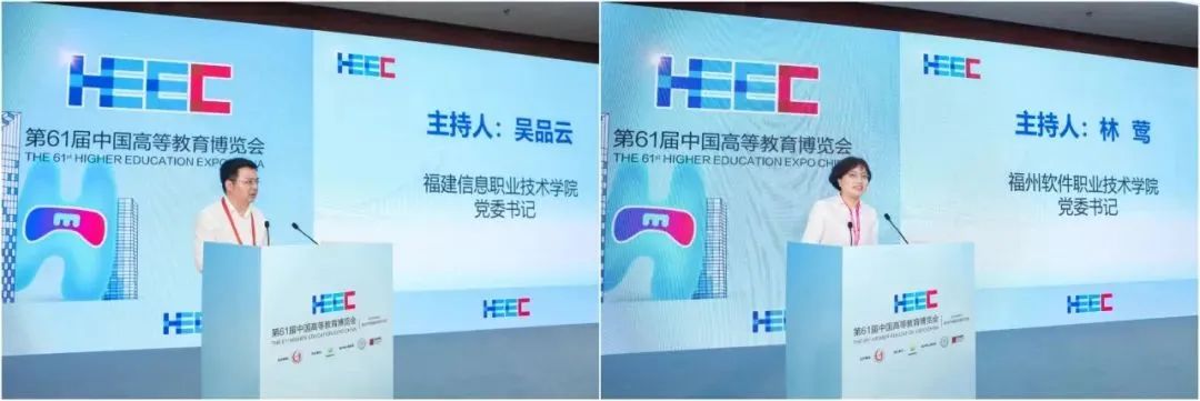 會議分別由中國高等教育學會職業技術數育分會理事長周建松、福建信息職業技術學院黨委書記吳品云、福州軟件職業技術學院黨委書記林鶯主持。