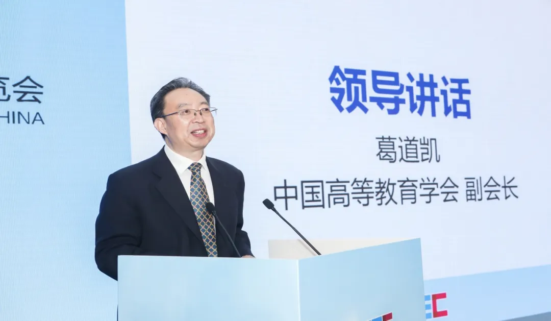 會上,葛道凱代表中國高等教育協會向學術活動的順利舉辦表示熱烈的祝賀,向出席今天學術活動的各位領導、專家、嘉賓和同志們表示誠摯的歡迎。他就數字化賦能職業教育高質量發展交流三點認識:第一,數字化賦能職業教育,是實現高質量發展的必然時期。第二,數字化賦能職業教育,是職業教育自身變革的內在要求。第三,數字化賦能職業教育是學校和企業不可回避的共同責任,也是共同命題。要攜手來扎實推進職業教育的數字化轉型進程,推進轉型成果更快更好的匯集更多的學校,廣大的學生和相關企業,為中國式現代化提供更為有利的職業教育支撐。