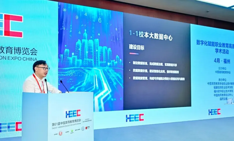 學術活動上,何勇波總經理從數據服務、教育教學、管理服務、雙高計劃監測等方面深入探討職業教育的數字化建設。