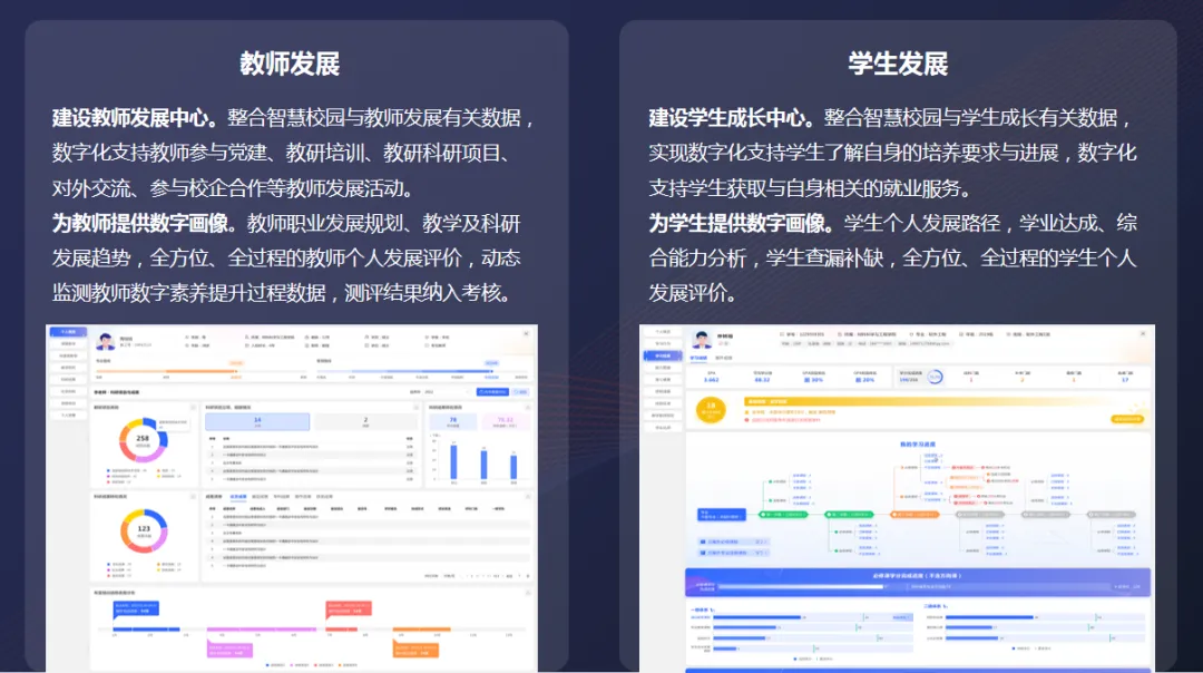 幫助學校建立師生發展中心,構建師生數字畫像,打造全方位、全過程的師生個人發展評價體系。