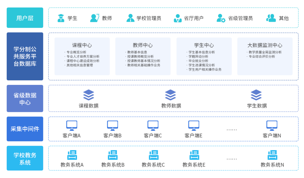 ? 建設全省本科高校教學數據中心,為課程等級評價、學科專業綜合評價、課程學分互認體系、學業導師輔導、課程績效激勵等提供數據支撐。