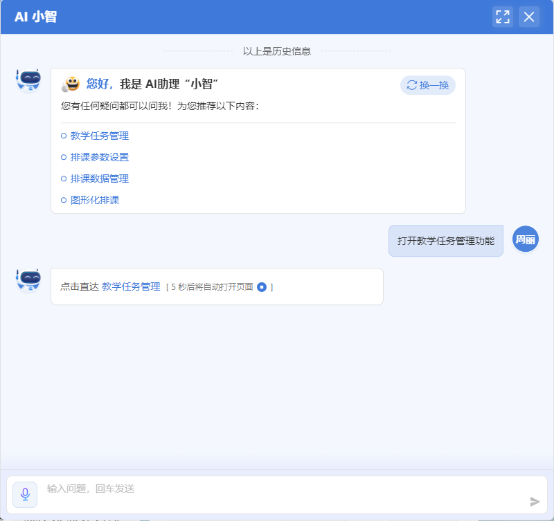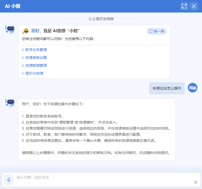 ? 深度融合DeepSeek、通義千問等AI大模型,實現復雜教育場景的精準語義解析與推理能力升級,支持復雜業務場景的連續對話。
