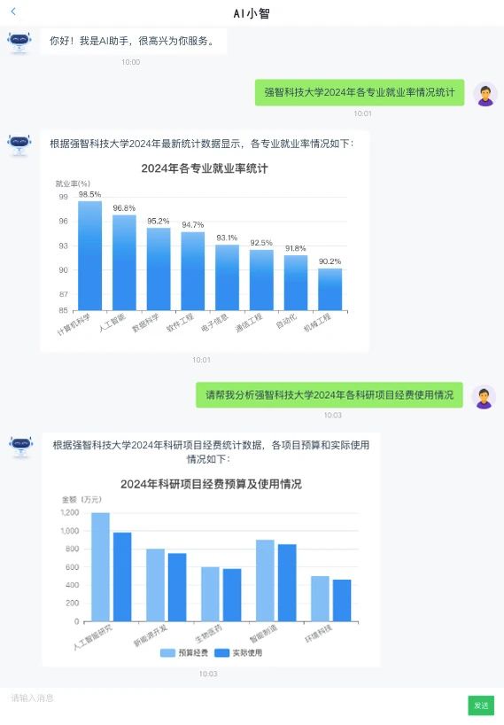 ? 職業規劃,你的事業伴侶:「AI小智」為學生提供職業興趣測試、崗位推薦、就業方向推薦、簡歷優化等服務。