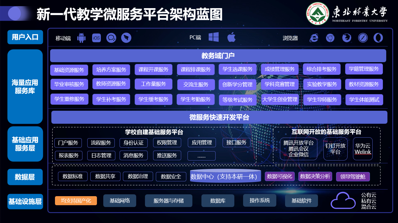 ★ 個性化開發:建設東北林業大學特色功能模塊,如創新技能學分、實驗教學服務、創新創業項目、教學運行分析服務等。
